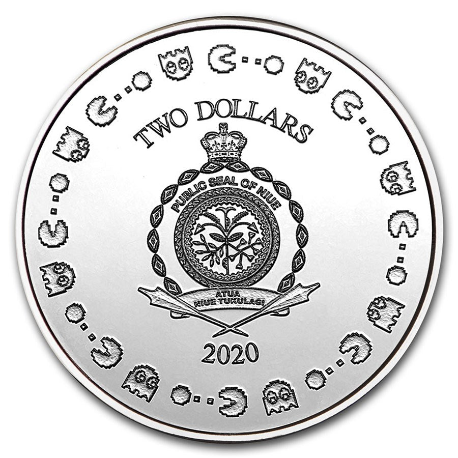 - Obverse: Displays the Niue coat of arms along with the face value and year of issue surrounded by officially licensed PAC-MAN™ sprites from the original 1980s classic arcade game.